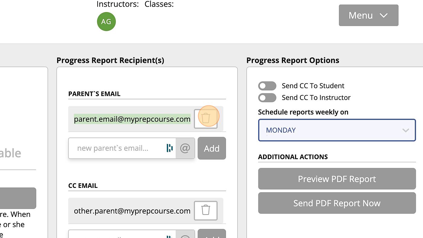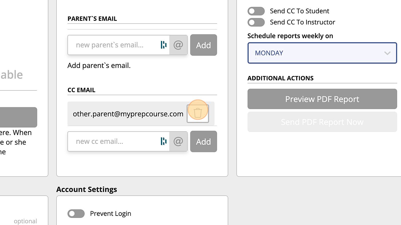 9. If anyone had been cc'd on the parent emails, click the trashcan next to the CC Email field.