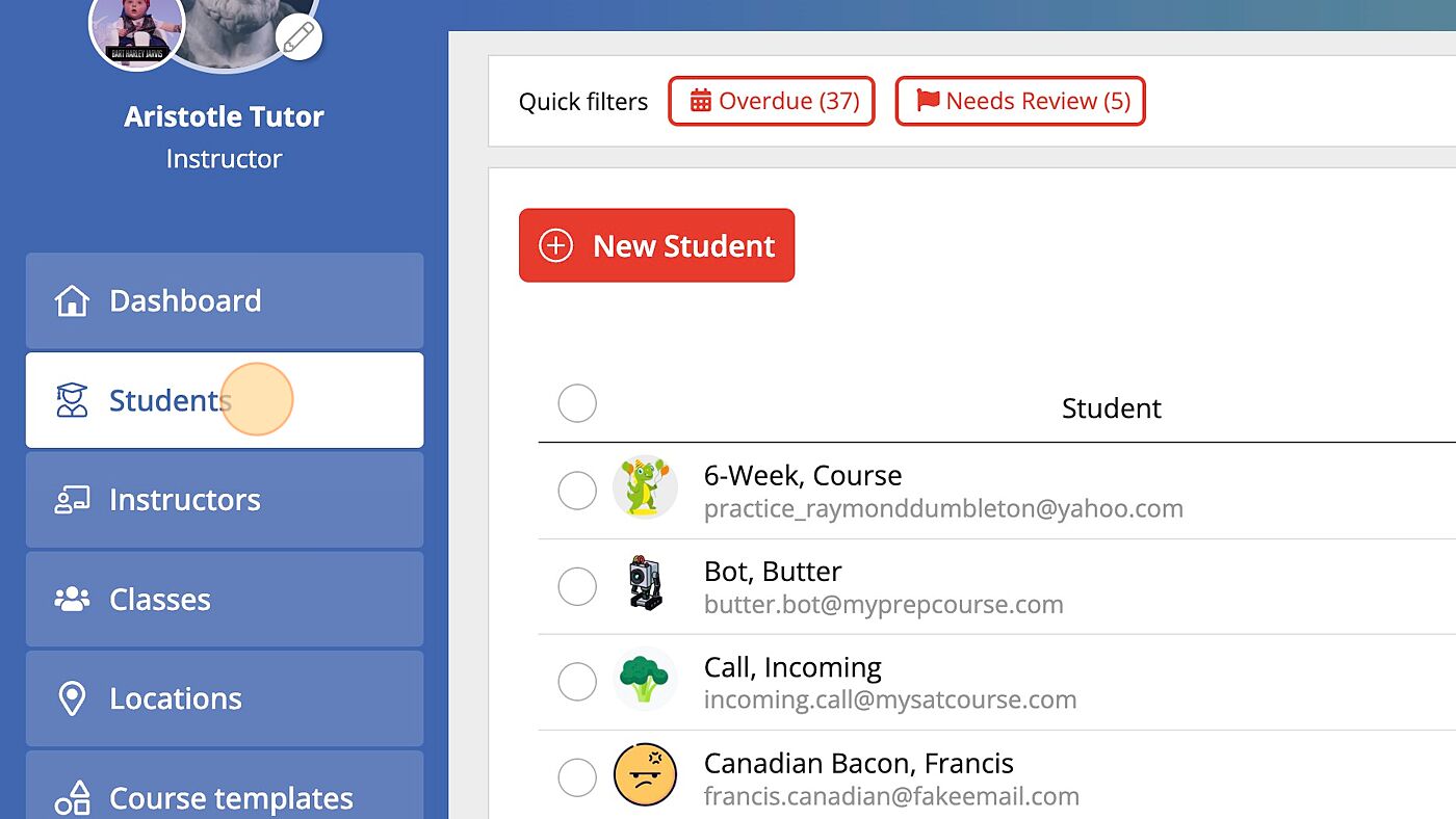 1. Select "Students" from the menu and click on the student whose parents no longer wish to receive email progress reports.