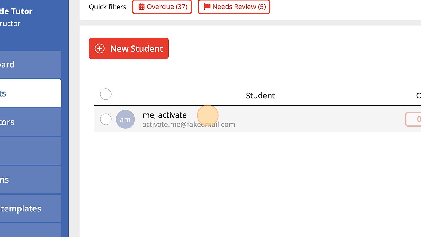 6. In the example shown below, we searched for students matching a partial email address "activate.me" which yielded the search result you see below. Once you've located the student's account, click on that student to go to the summary screen for that student.