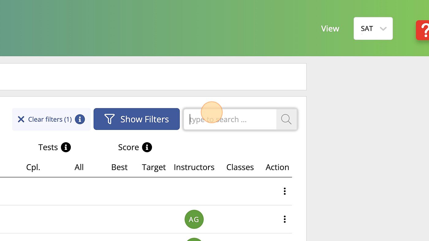 5. Search for the student's name or email address to narrow your results. Note: you can search for partial names or emails.