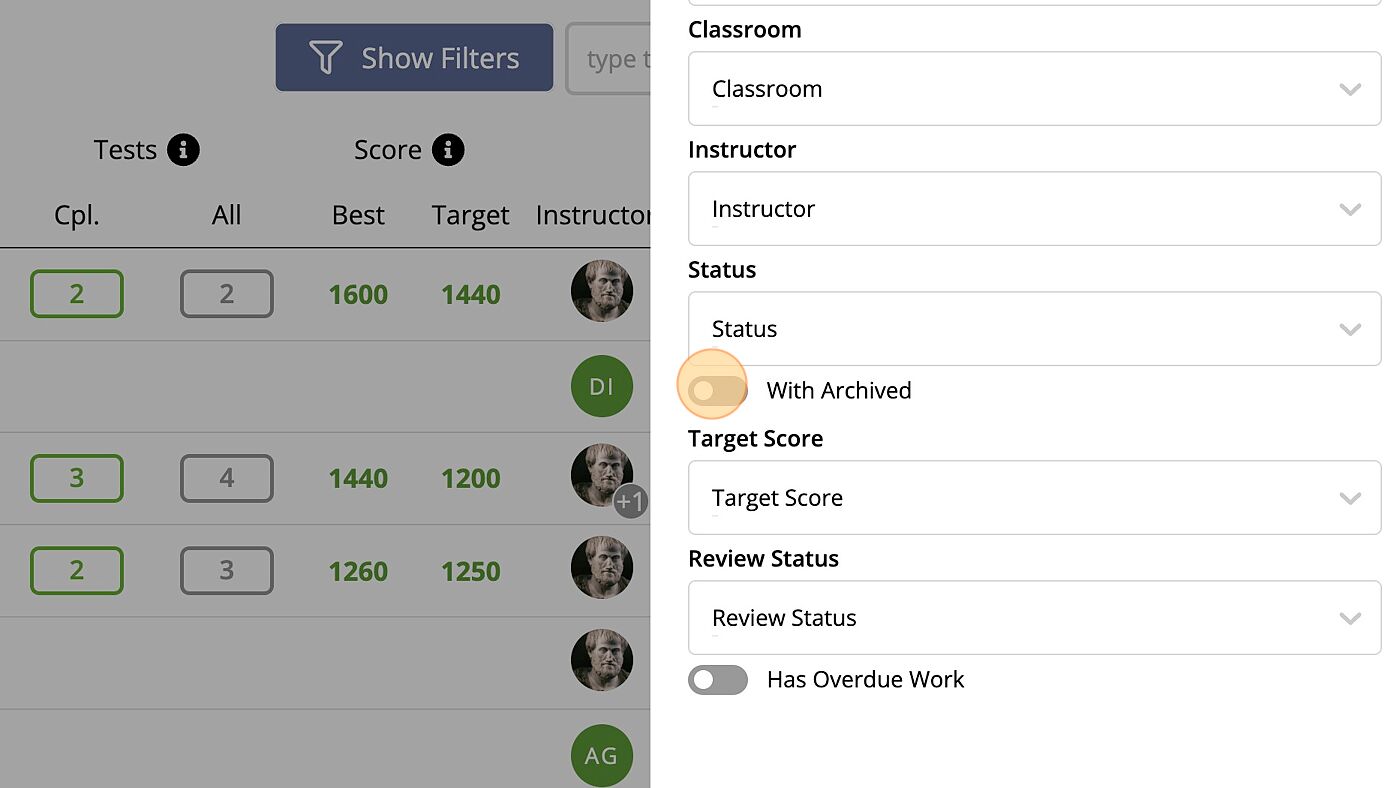 3. Click the slider to enable the "With Archived" option. This will include all archived accounts that match your search criteria in your search results.